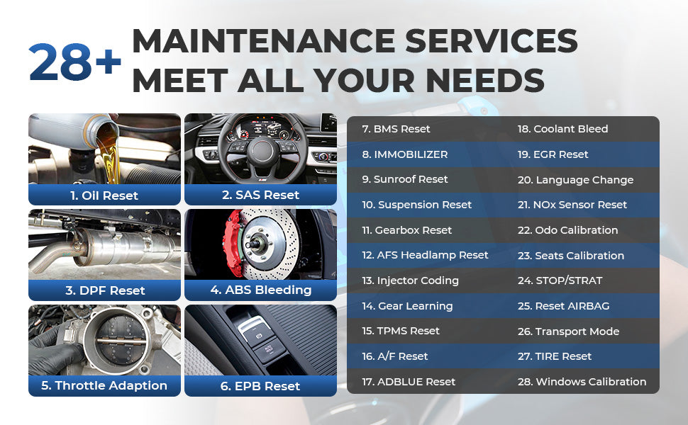 All-in-one diagnostic scanning tool, 28+ maintenance service functions to meet your needs